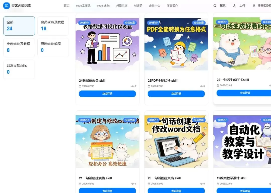 skills是去年10月份开始火起来的,然后就迅速火得一塌糊涂,但是有一个大问题,就是对小白极度不友好。你或许刷到过其他博主的某skills教程,首先要下载CC部署,然后再出命令行,还得会魔法,嗯,对于我们普通人来说,这不是教程,而是劝退。但是,skills还是必须要学会的,这是今年最大的风口,我一直没有出教程,是在寻找一个普通人可用的入口直到coze 2.0来了。并且更新了技能跟技能商店。我研究了几周,并且布局了近百个skills后,终于得出结论,coze skills是普通人可以掌握的入口,而现在,到了跟大家分享的时候了那就让我们抓紧开始教程吧。还是秉持着我讲述工作流的思路,由浅到深,案例先行。本次更新估计会在三个月左右,近百个案例,没关注的记得提前关注起来。02 案例效果