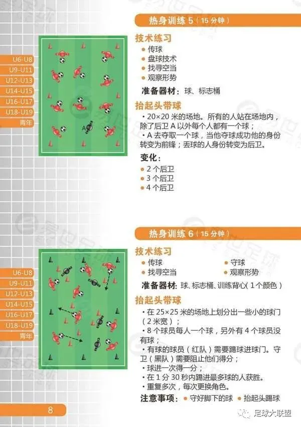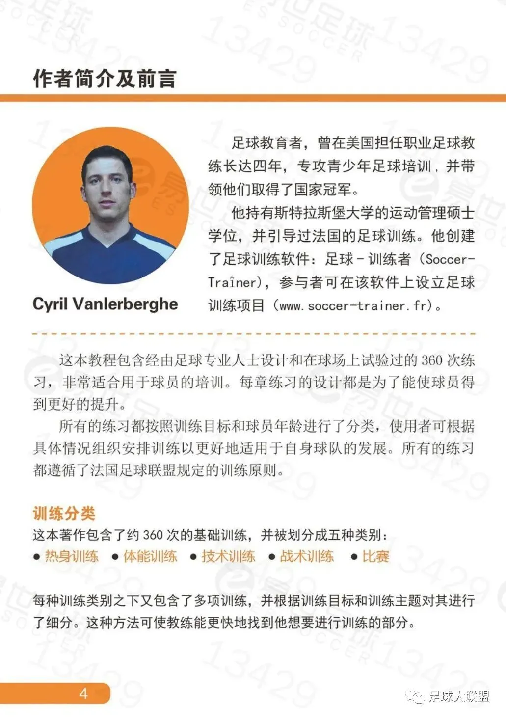 作者提供了超过360篇训练和比赛,以便您的球队得以进行不同类型的训练:热身训练,体能训练,技术训练,战术训练,比赛。这些训练和比赛都十分实用,并配插图,能够很方便的在足球场上展开训练。