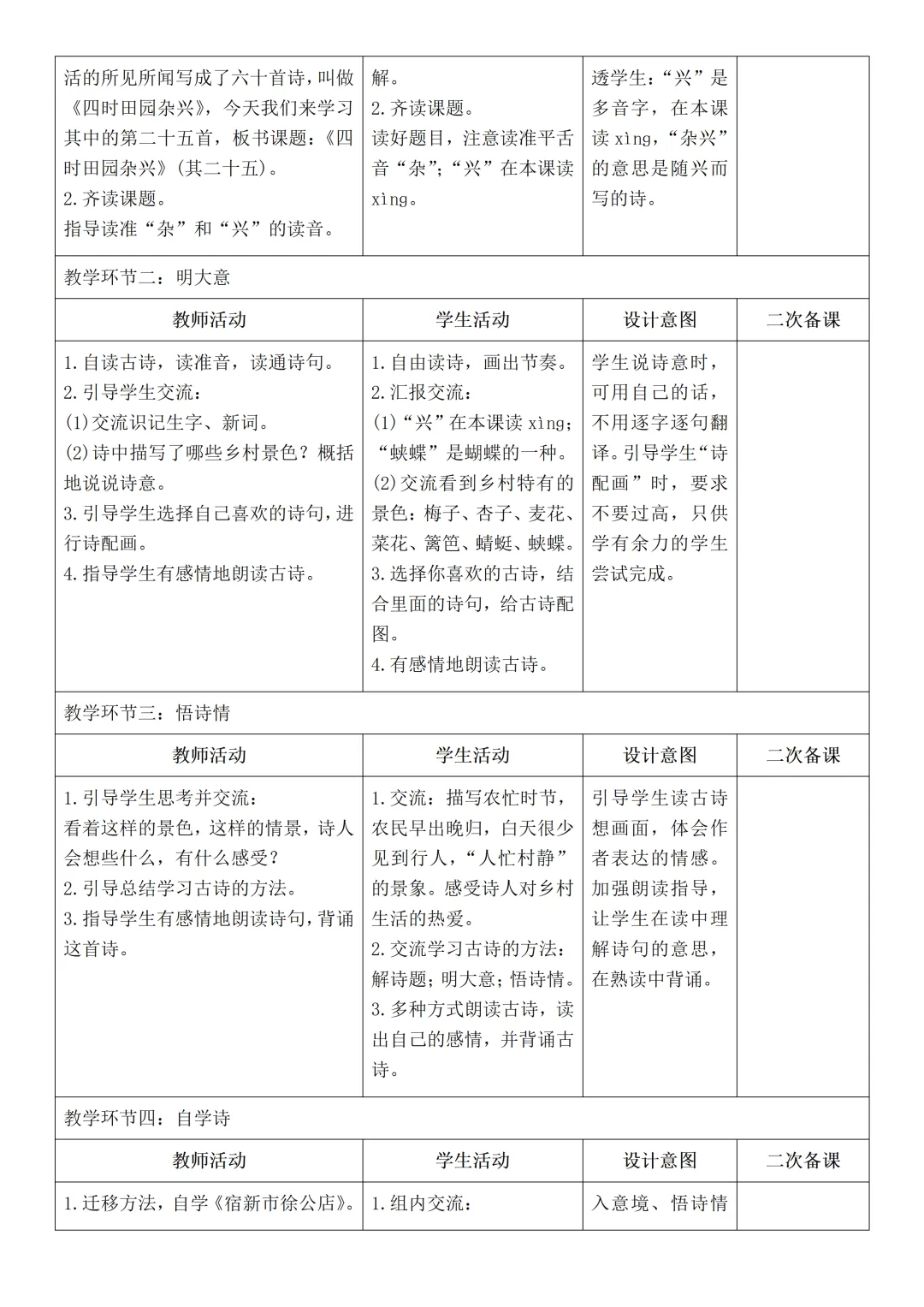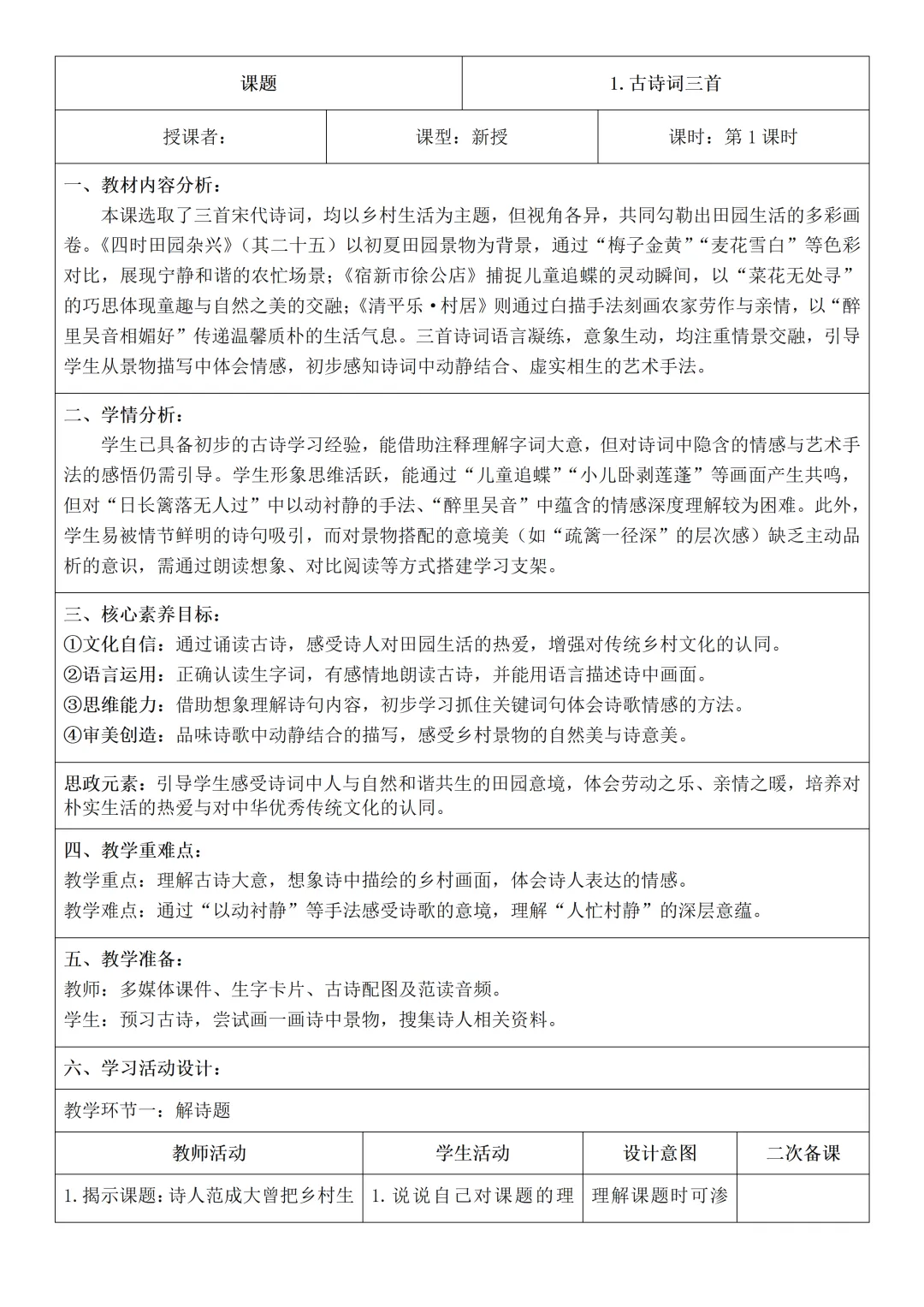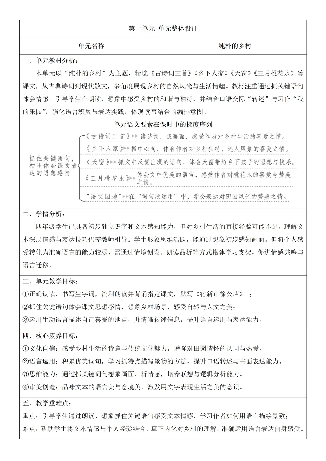 人教版语文四年级下册核心素养教案含反思+思政元素2026春