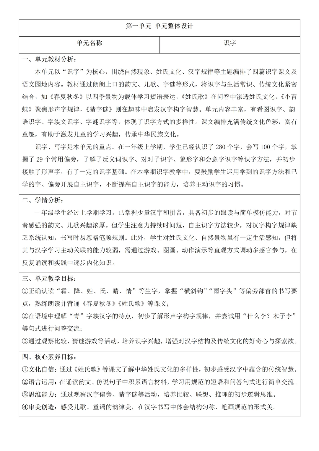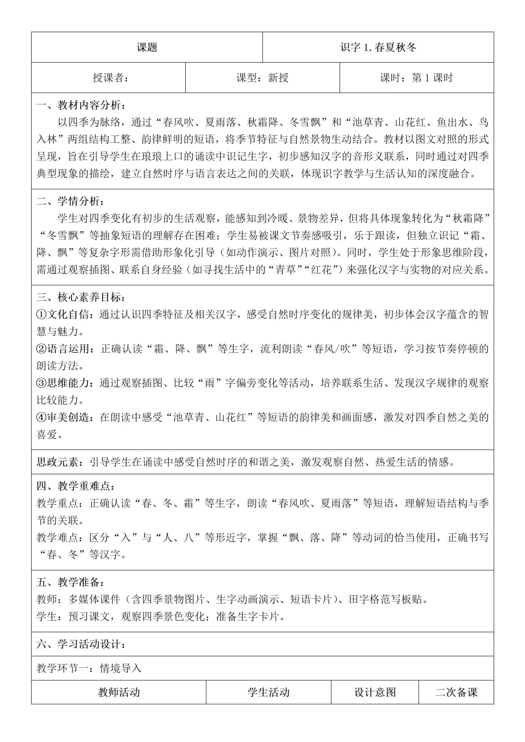 新教材 人教版语文一年级下册核心素养教案含反思+思政元素2026春