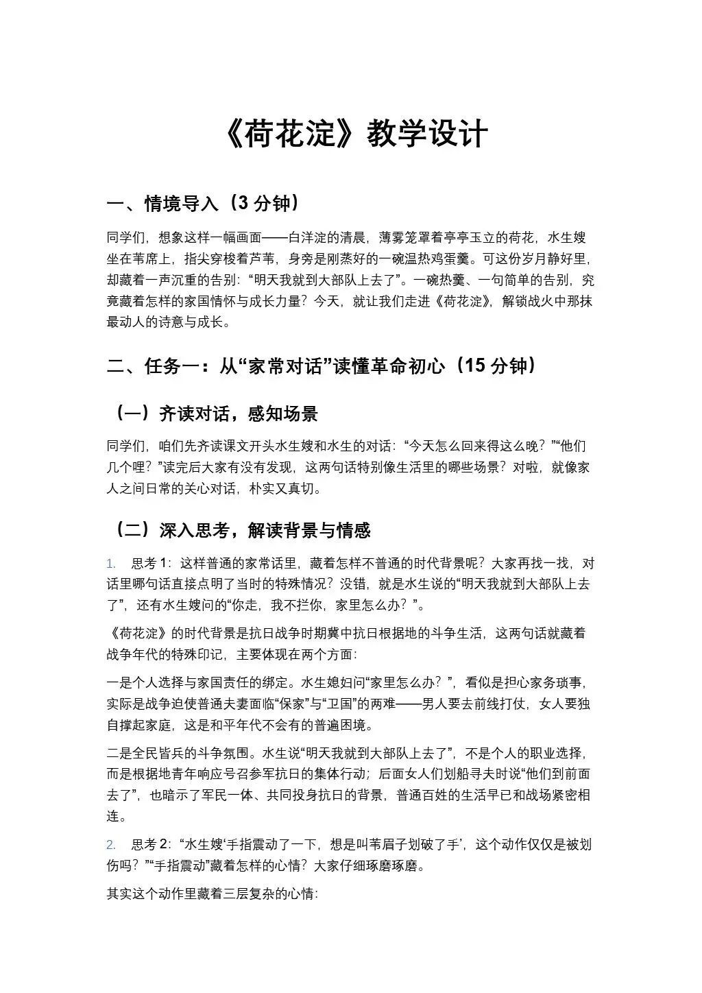 【名师精品公开课系列】| 《荷花淀》:课件+教学设计+导学案