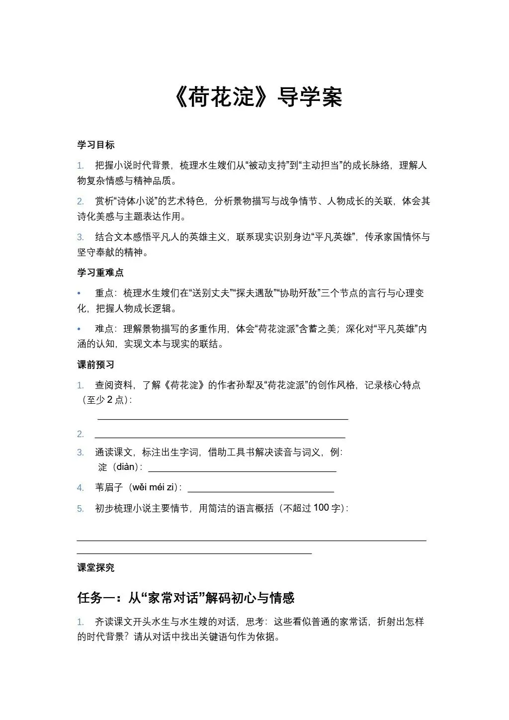 >【名师精品公开课系列】| 《荷花淀》:课件+教学设计+导学案