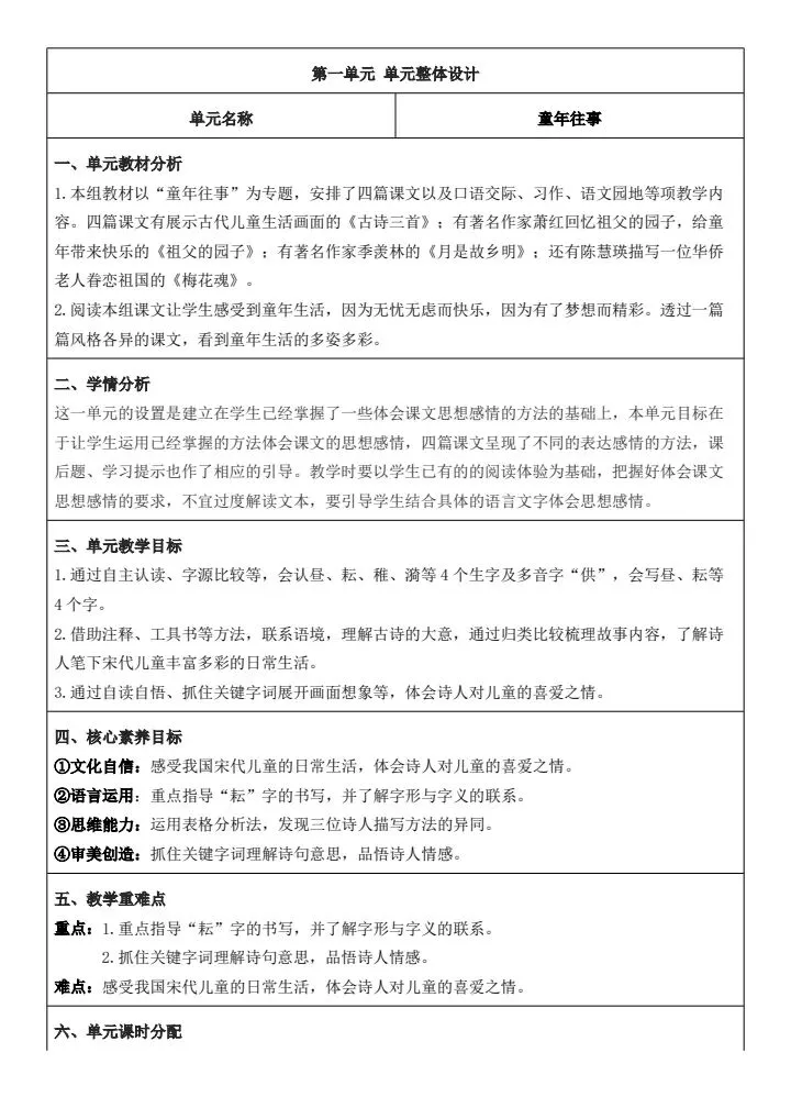 人教版语文四年级下册核心素养教案含反思+思政元素3套2026春,可下载编辑!
