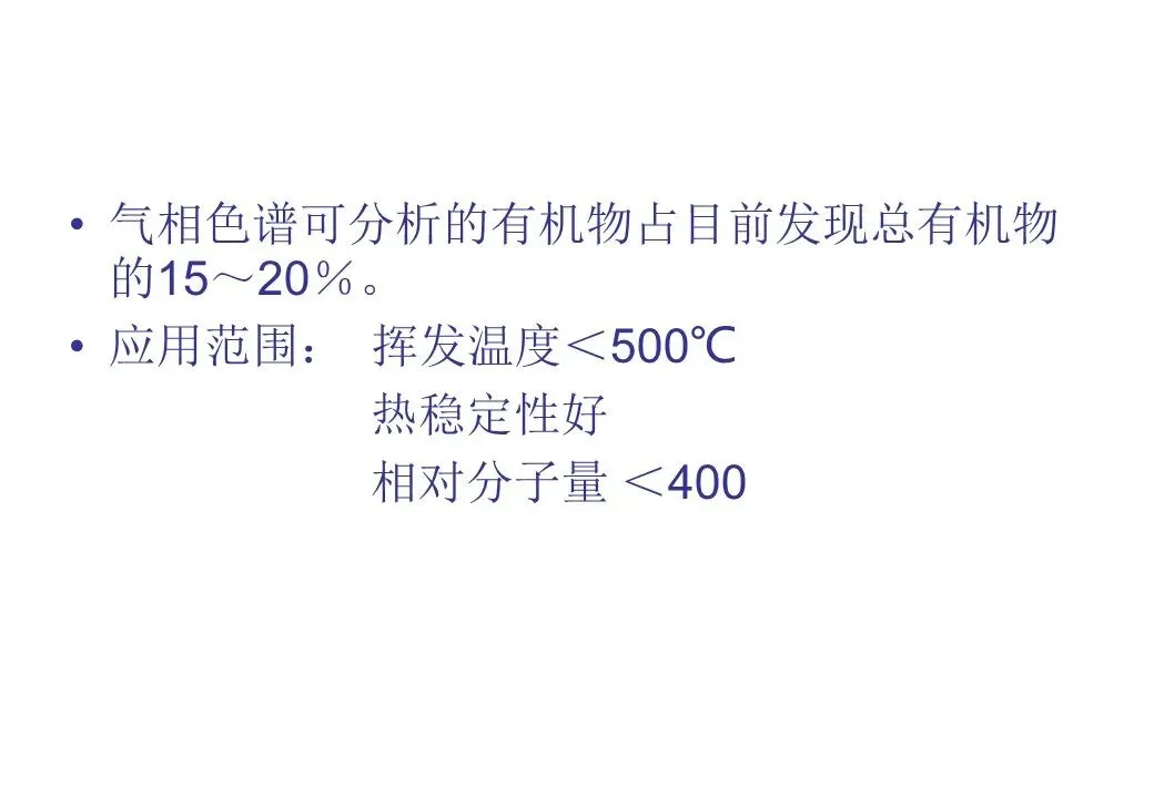 气相色谱多用高沸点的有机化合物涂渍在惰性载体上作为固定相,一般只要在450℃以下有1.5KPa-10KPa的蒸汽压且热稳定性好的有机及无机化合物都可用气液色谱分离。由于在气液色谱中可供选择的固定液种类很多,容易得到好的选择性,所以气液色谱有广泛的实用价值。