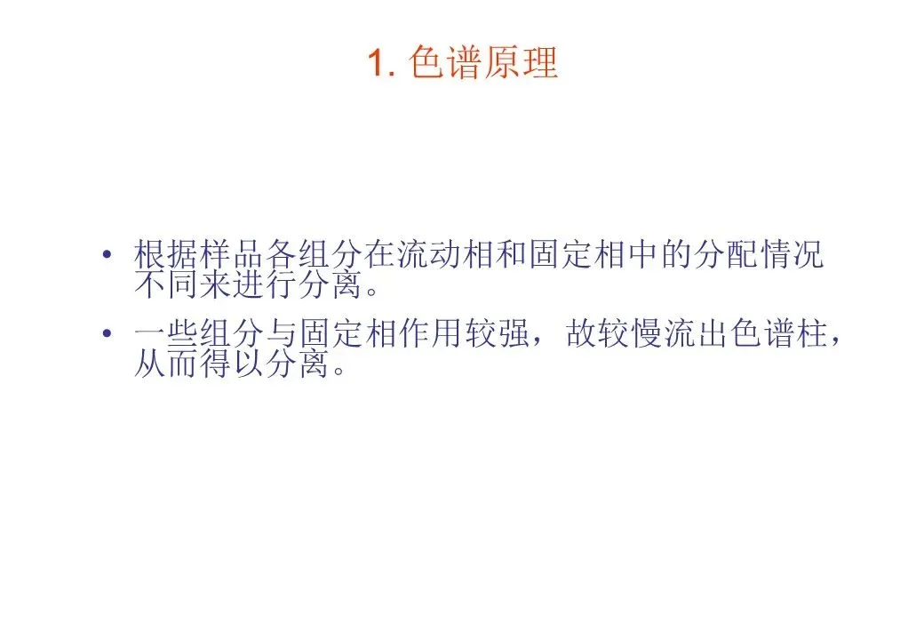 第一、非极性试样一般选用非极性固定液。非极性固定液对样品的保留作用,主要靠色散力。分离时,试样中各组分基本上按沸点从低到高的顺序流出色谱柱;若样品中含有同沸点的烃类和非烃类化合物,则极性化合物先流出。