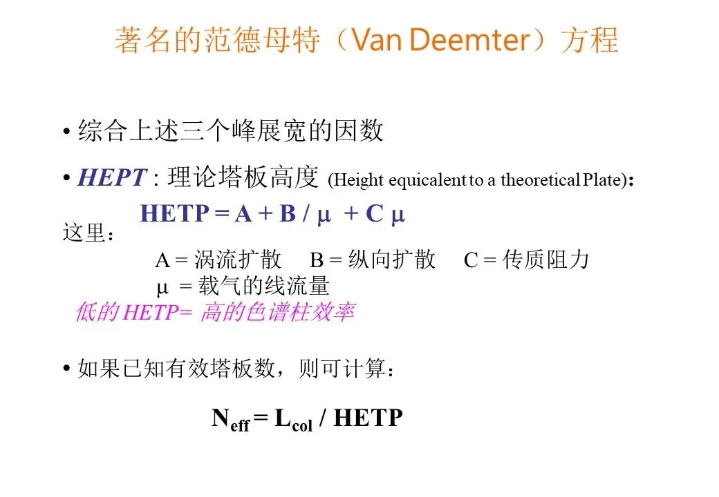 色谱柱的分离效果除与柱长、柱径和柱形有关外,还与所选用的固定相和柱填料的制备技术以及操作条件等许多因素有关。