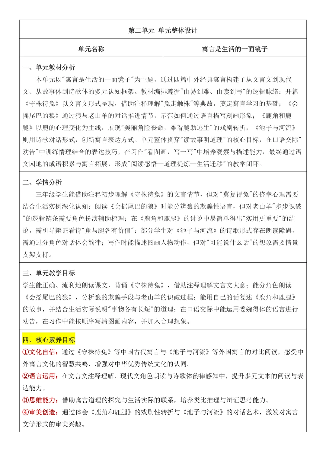 >2026春季新版三年级下册语文核心素养教案