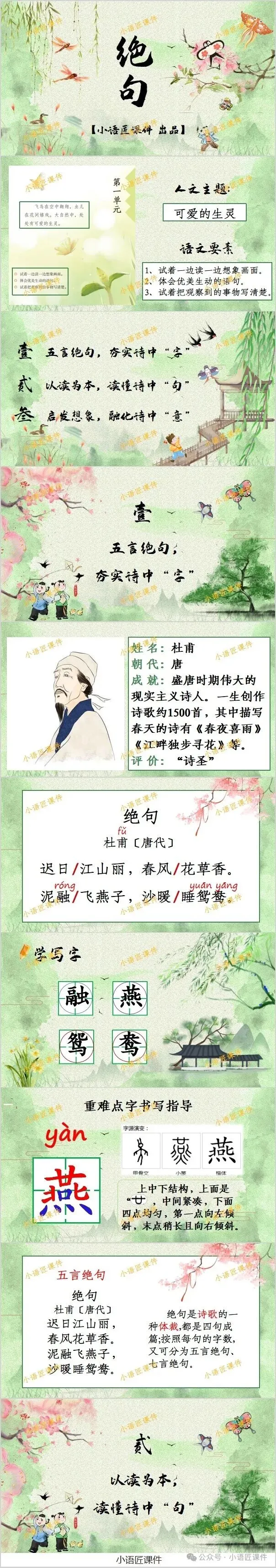 大家好,我是小语匠课件!今天给大家分享三年级下册《绝句》的独家课件。