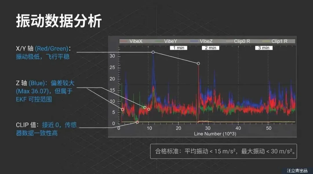 光有硬核的骨架还不够,工程师们还为这架原型机装上了主流的Pixhawk飞控“大脑”。为了让它拥有绝佳的平衡感,研究人员在电脑上对飞控系统里的PID(比例积分微分)参数进行了极其细致的打磨和微调。激动人心的实地试飞结果证明,这套“11字型”方案简直堪称奇迹!这架无人机不仅在垂直起飞时稳如泰山,在最容易翻车的“过渡飞行”阶段更是表现得极其丝滑顺畅,完全没有任何卡顿或失衡。后台的监测数据也显示,飞行途中的震动指标一直保持在非常安全的范围内,彻底征服了天空。