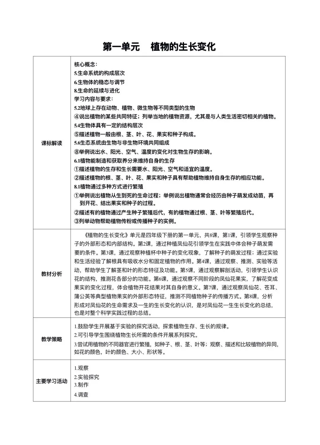 >26春四下科学教案+课件+单元复习课件+教学计划