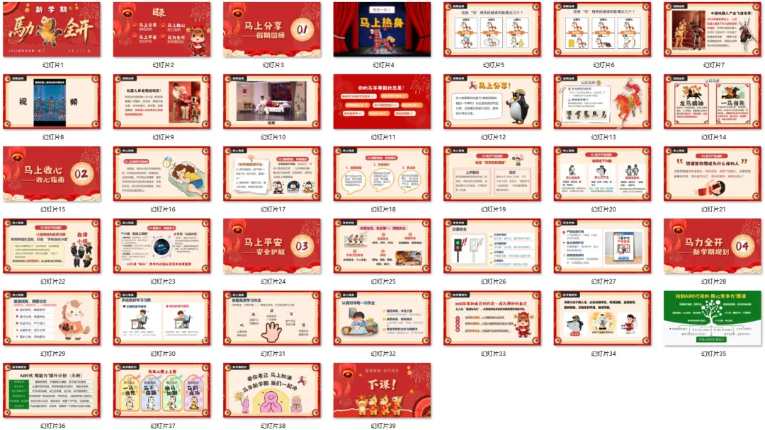 2026春最新版!小学1~6年级通用版开学第一课《马力全开》,课件、发言稿,PPT+DOC格式,共39页幻灯片,可编辑。文末免费下载。