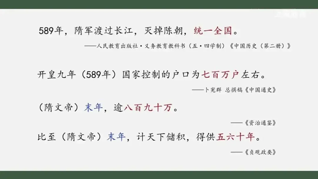 但版图的统一其实只是再造统一的一个方面。针对新王朝的建设和国家统一的巩固,隋朝统治者采取了一系列举措。