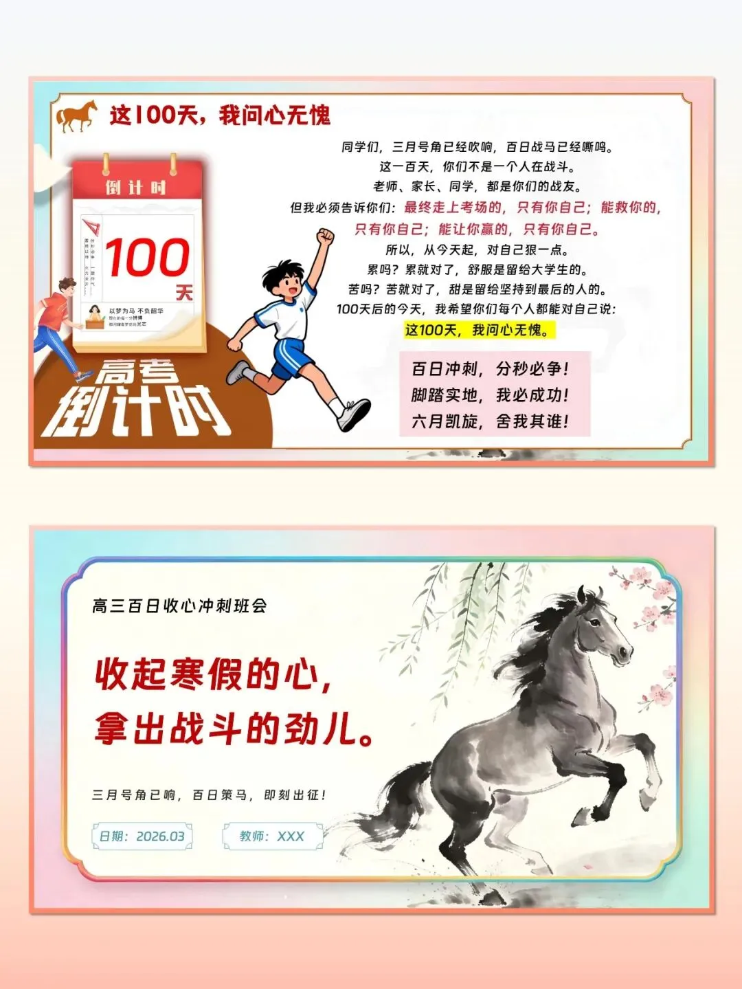 高三百日冲刺班会|三月号角,百日策马(课件+教案)