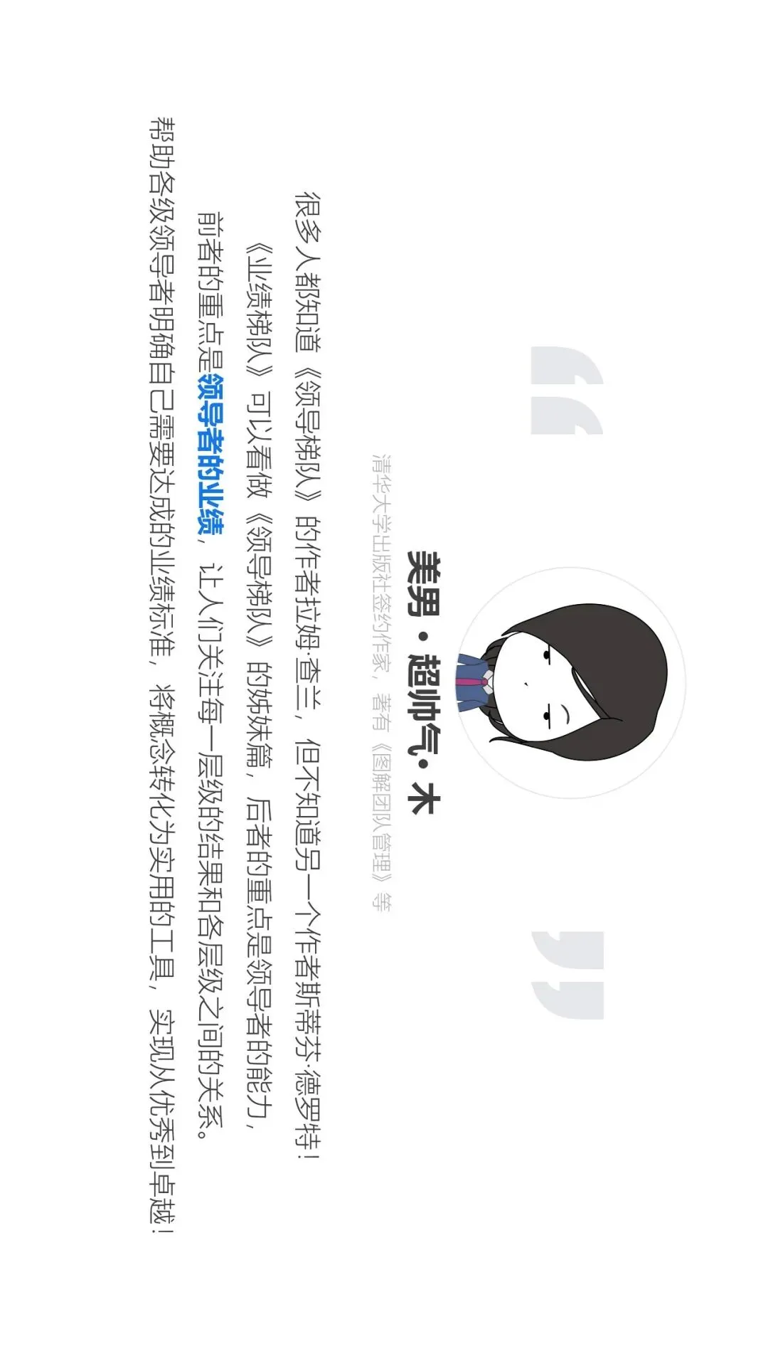 《业绩梯队》可以看做《领导梯队》的姊妹篇,后者的重点是领导者的能力,前者的重点是领导者的业绩,让人们关注每一层级的结果和各层级之间的关系。帮助各级领导者明确自己需要达成的业绩标准,将概念转化为实用的工具,实现从优秀到卓越!