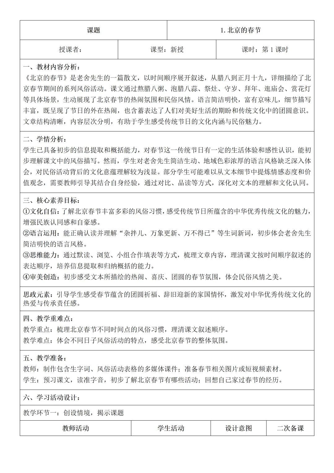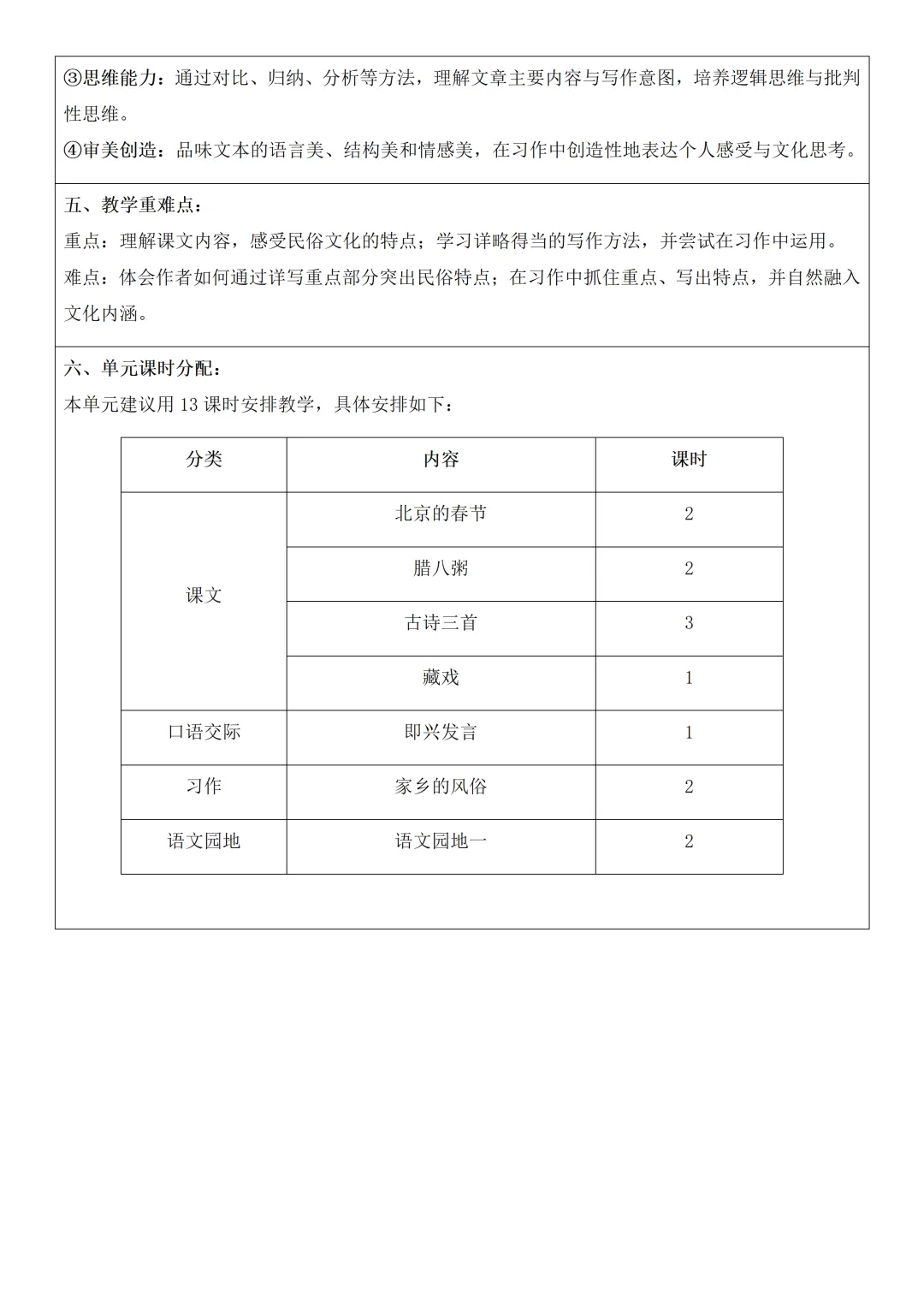 人教版语文六年级下册核心素养教案含反思+思政元素2026春