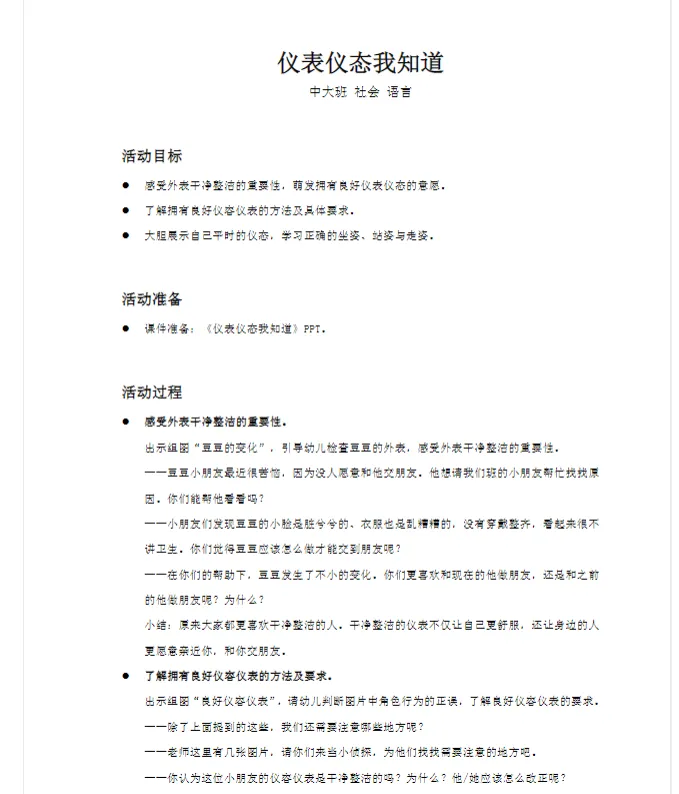 幼儿园中大班_语言_课件《仪表仪态我知道》PPT+教案