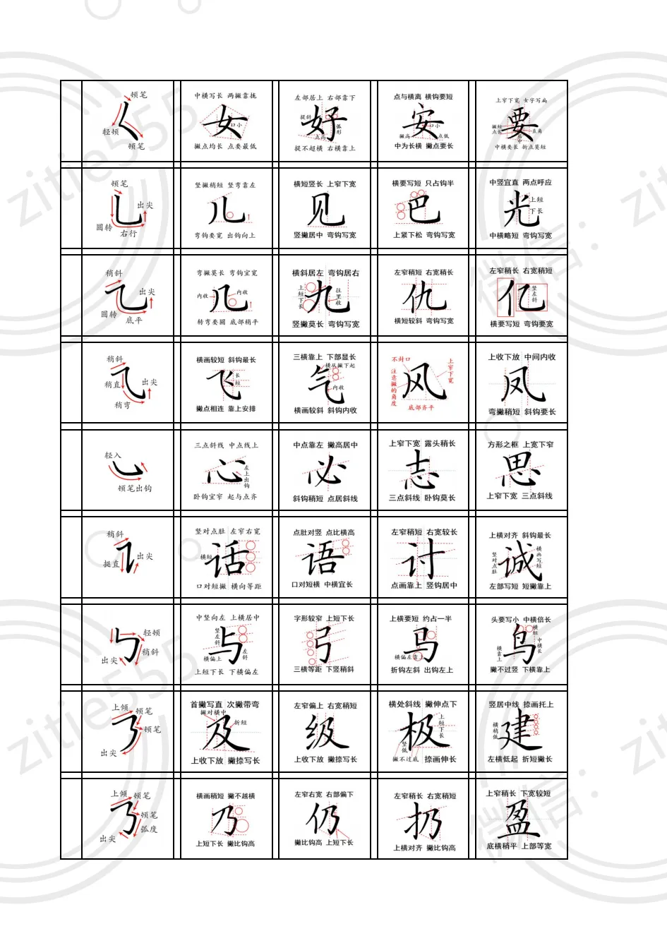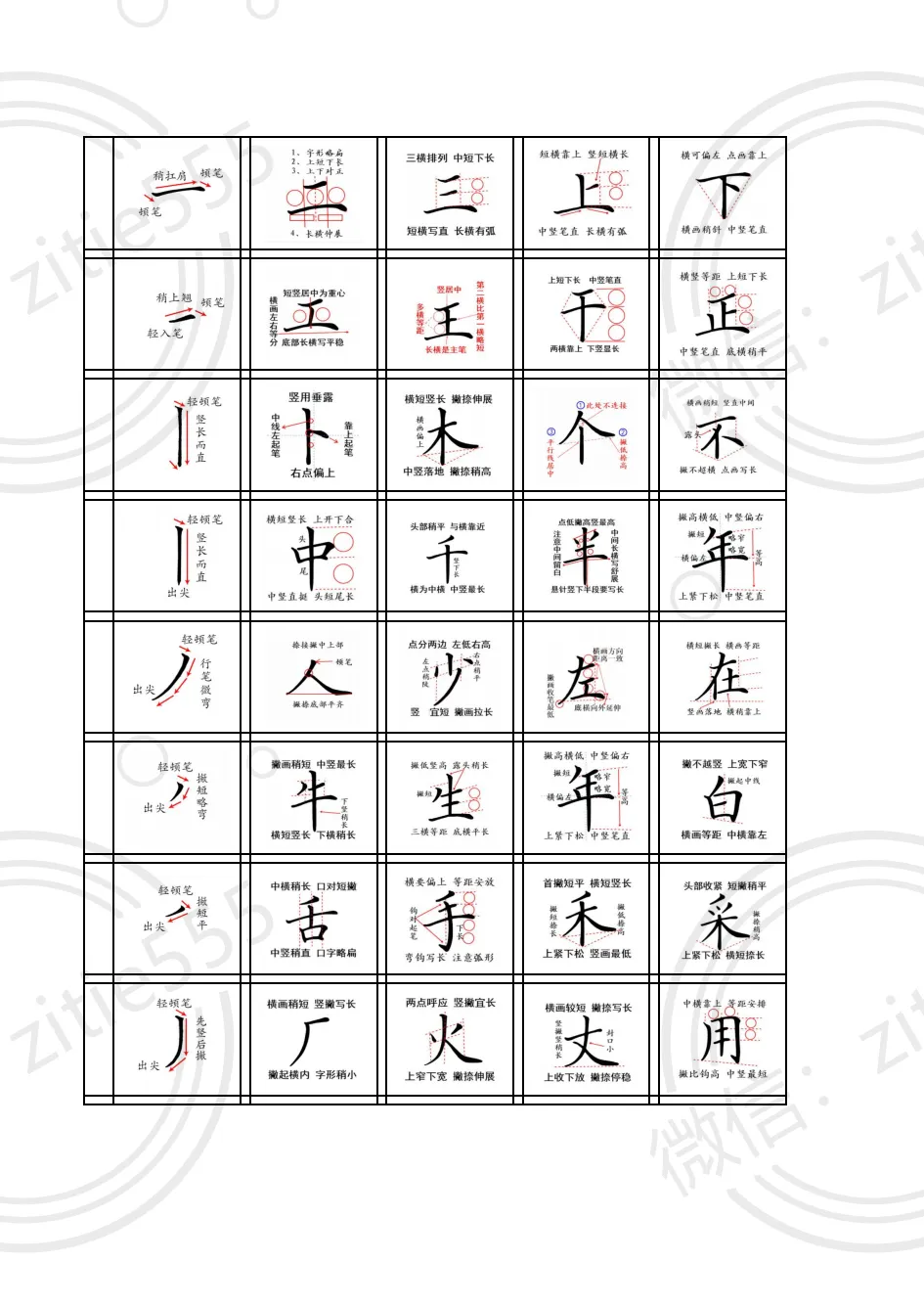 - 重点:掌握 36 个基础笔画的正确书写方法,包括起笔、行笔、收笔的位置和力度控制。