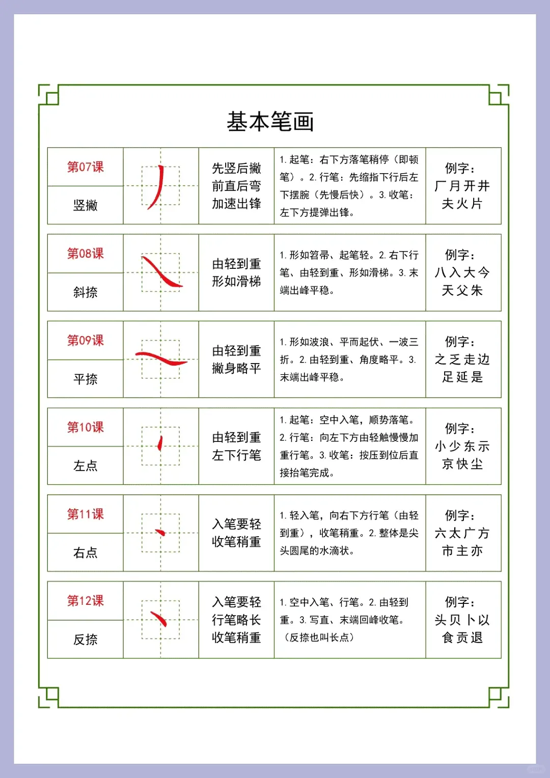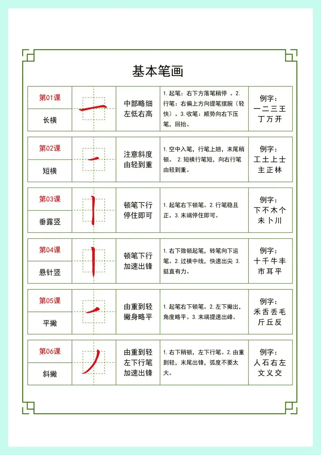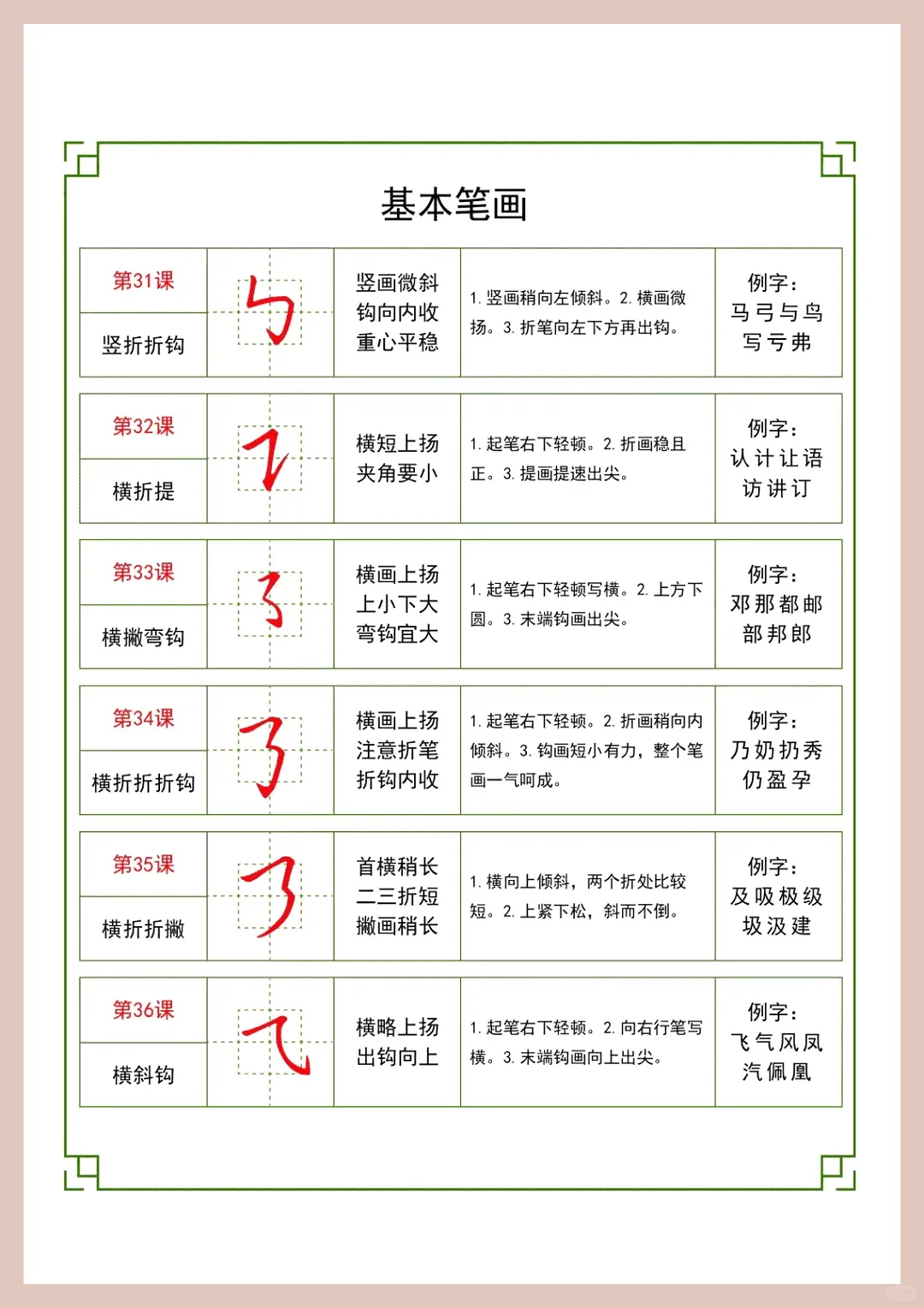 36 个基础笔画详细教案