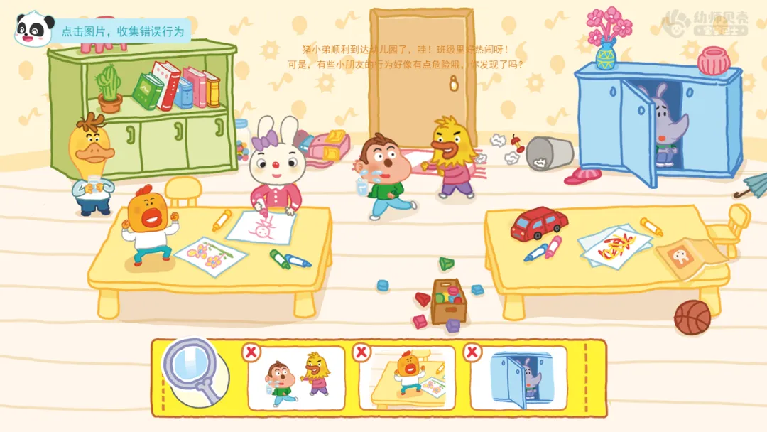 ——猪小弟顺利到达幼儿园了,哇!班级里好热闹呀!