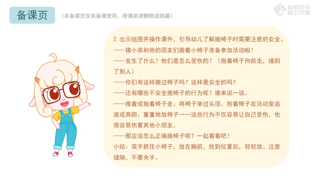 ——还有哪些不安全地搬椅子的行为呢?谁来说一说。