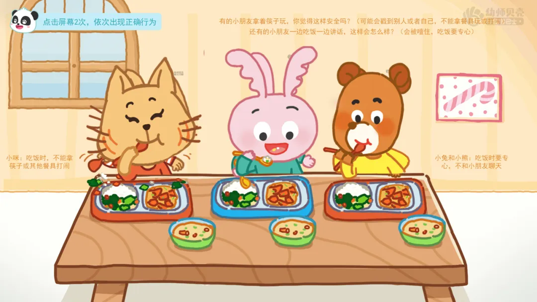 ——到了午饭时间啦!不过有些小朋友好像忘记了吃饭时的安全哦!