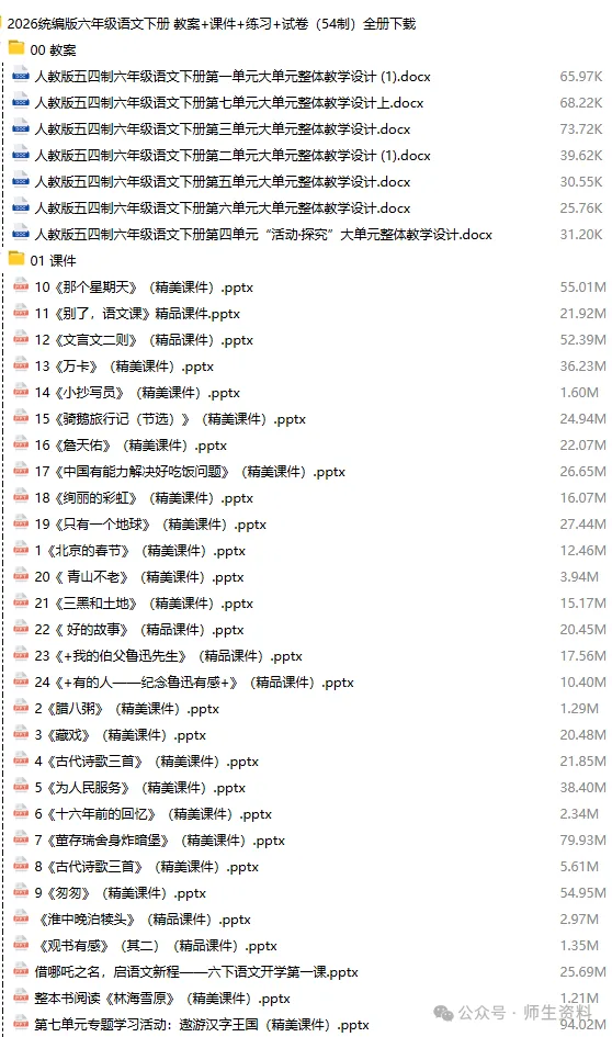 人教版(五四制)六年级语文下册第一单元大单元整体教学设计
