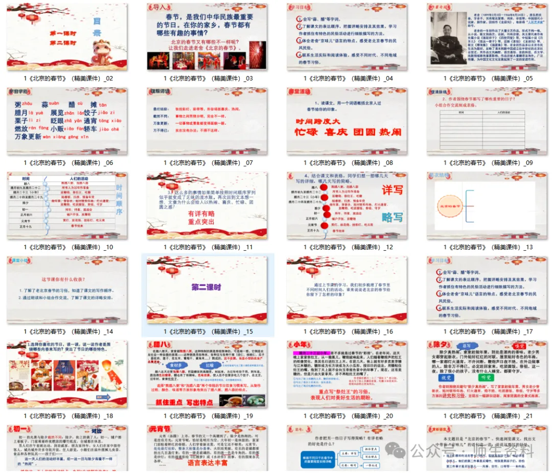 •小结:本节课我们梳理了《北京的春节》的叙述顺序,感受了腊八至小年的民俗氛围,下节课继续学习除夕至元宵的热闹场景。