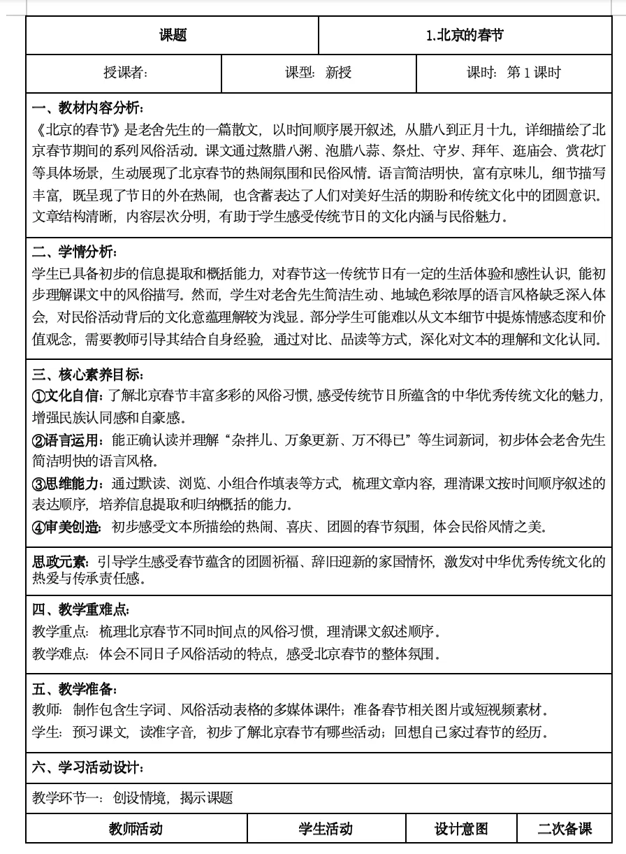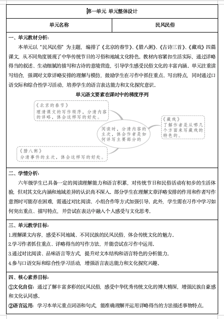 >【六年级】语文六年级下册核心素养教案(有二次备课,有反思)