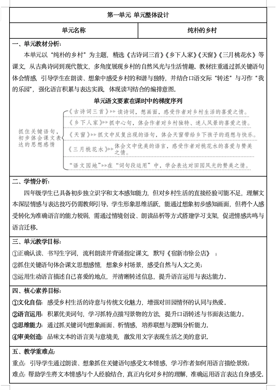全册单元核心素养教案
