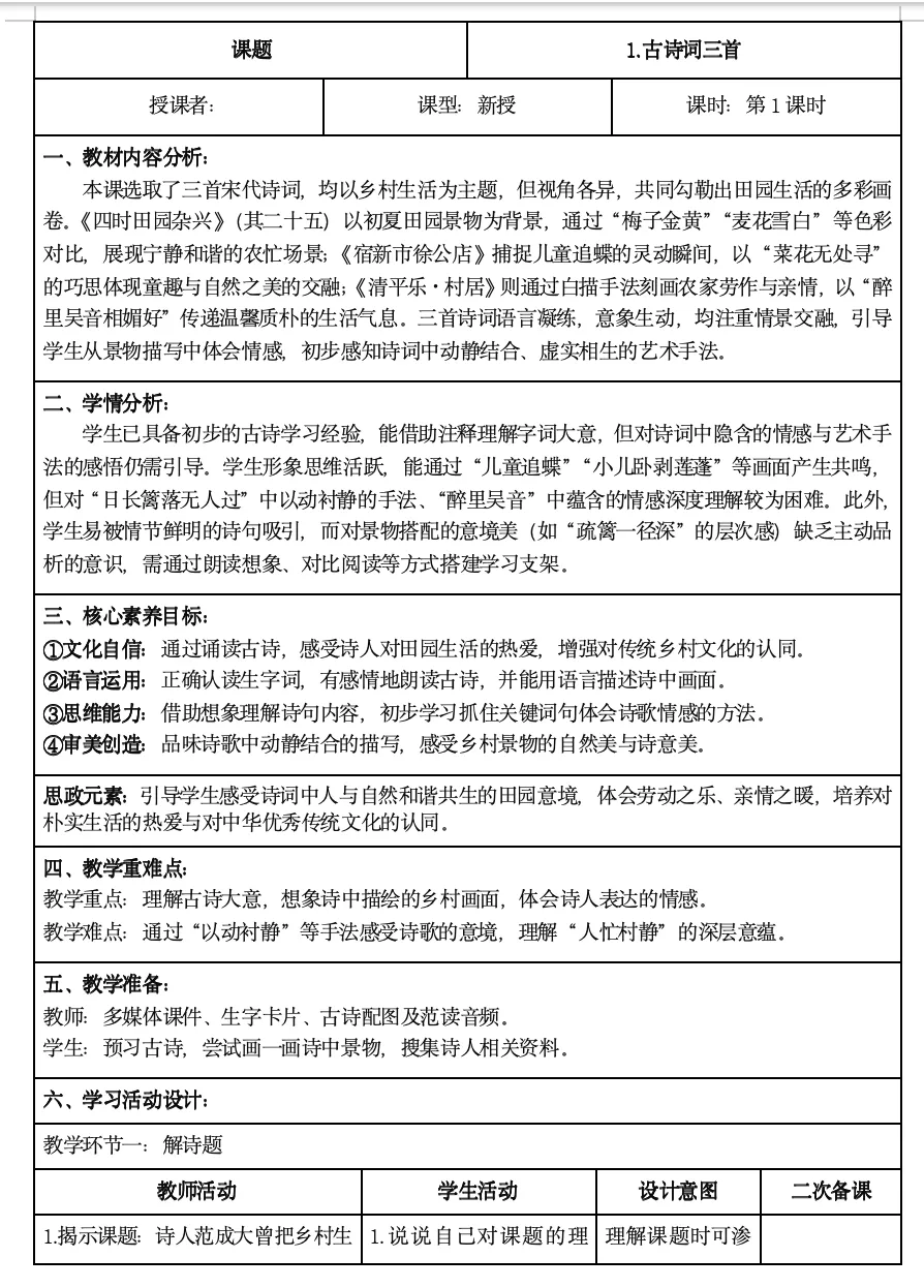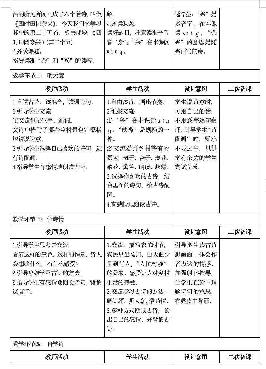 >【四年级】语文四年级下册核心素养教案(有二次备课,有反思)