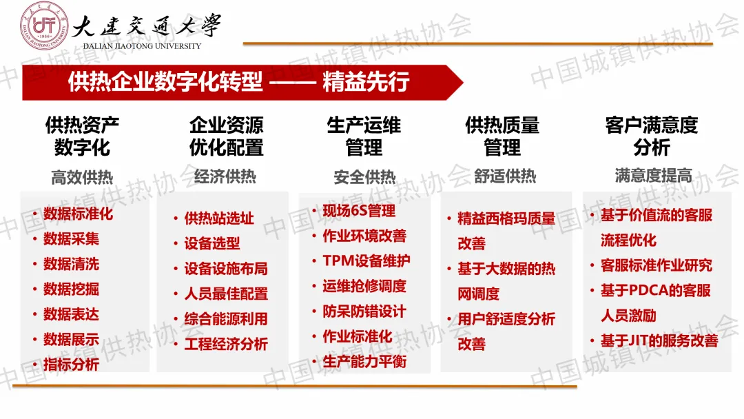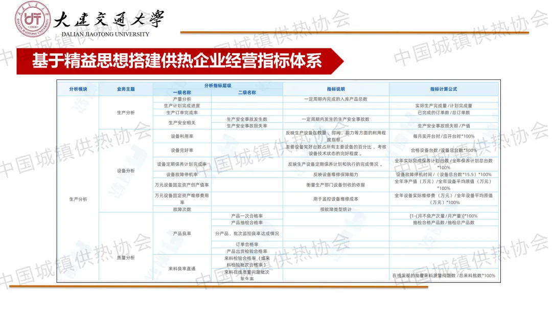 “大数据物联网赋能智慧供热”主题论坛上,大连交通大学教授孙丽作了关于“精益管理在搭建供热企业经营指标体系中的应用”的主题演讲,介绍了精益思想的五大原则和基本逻辑、精益生产在传统制造业的应用场景,并分享了基于精益思想搭建的供热企业经营指标体系和企业经营指标体系目视化管理。