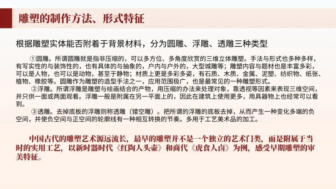 本期更新的课件为统编高教社版中职《艺术(美术鉴赏与实践)》第三章 第一节:中国雕塑艺术,共41页。