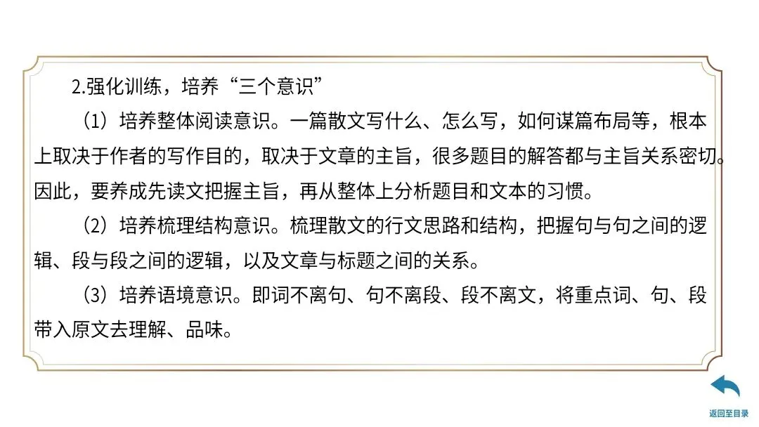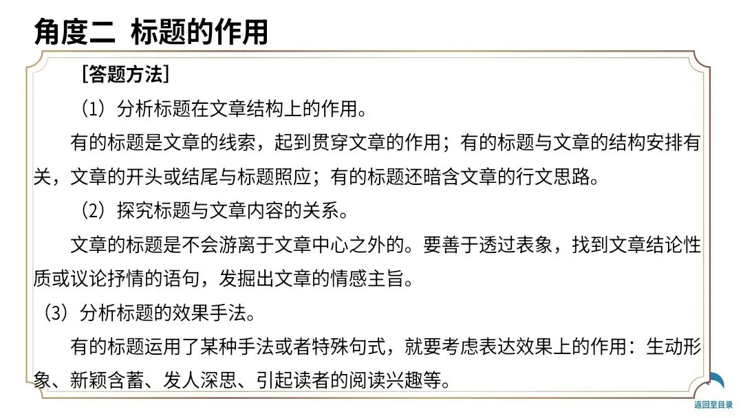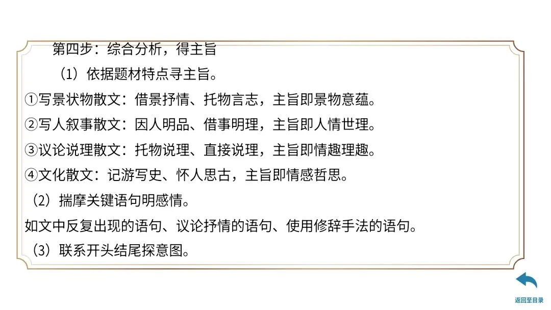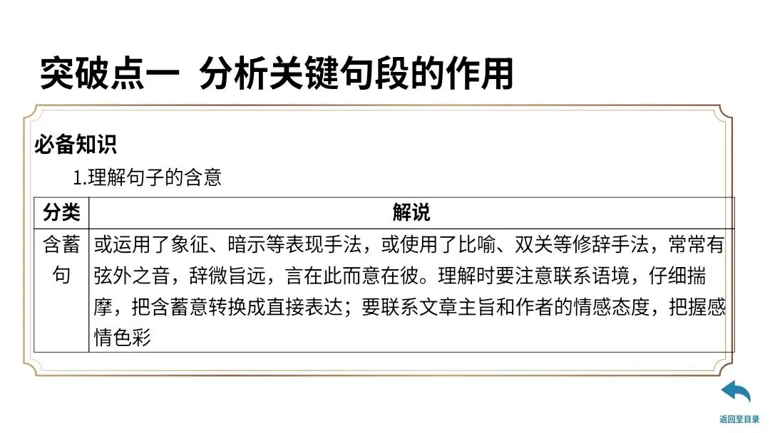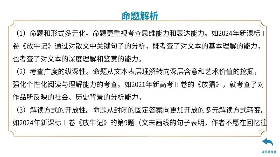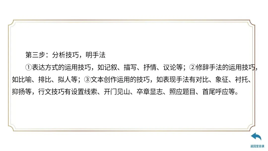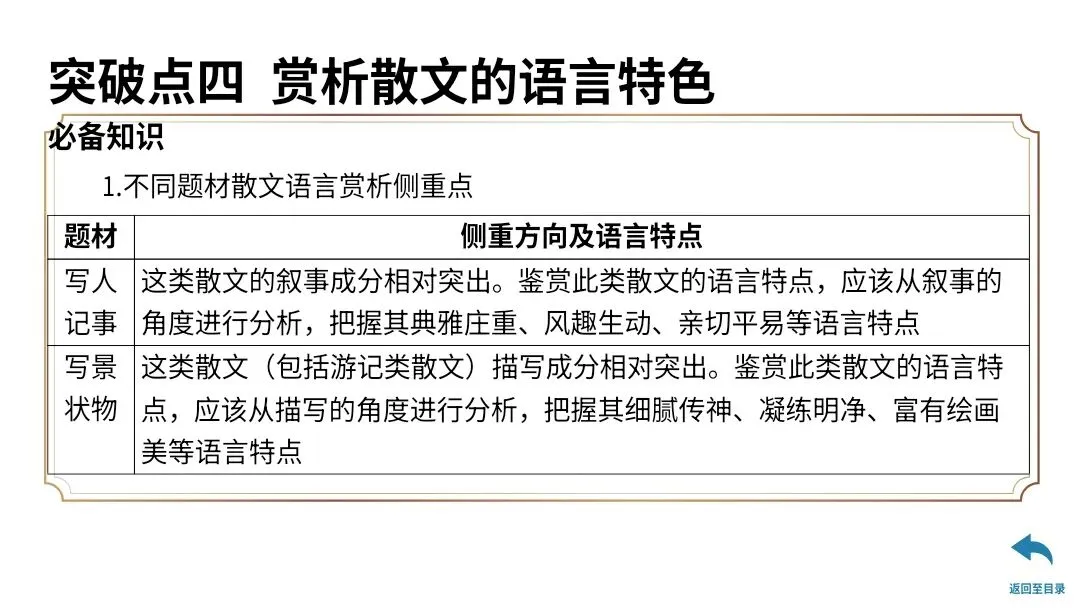 【26届高考语文二轮专题复习】散文阅读课件(1.分析关键句段的作用,2.概括分析形象,3.探讨标题的含义和作用,4.赏析散文的语言特色,5.分析行文思路与线索,6.赏析散文的表达技巧,7.准确概括散文的内容主旨)课件