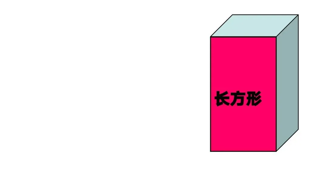 (1)课件呈现长方形,你是从哪一种形状的物体得到这种图形的?它有什么特点?