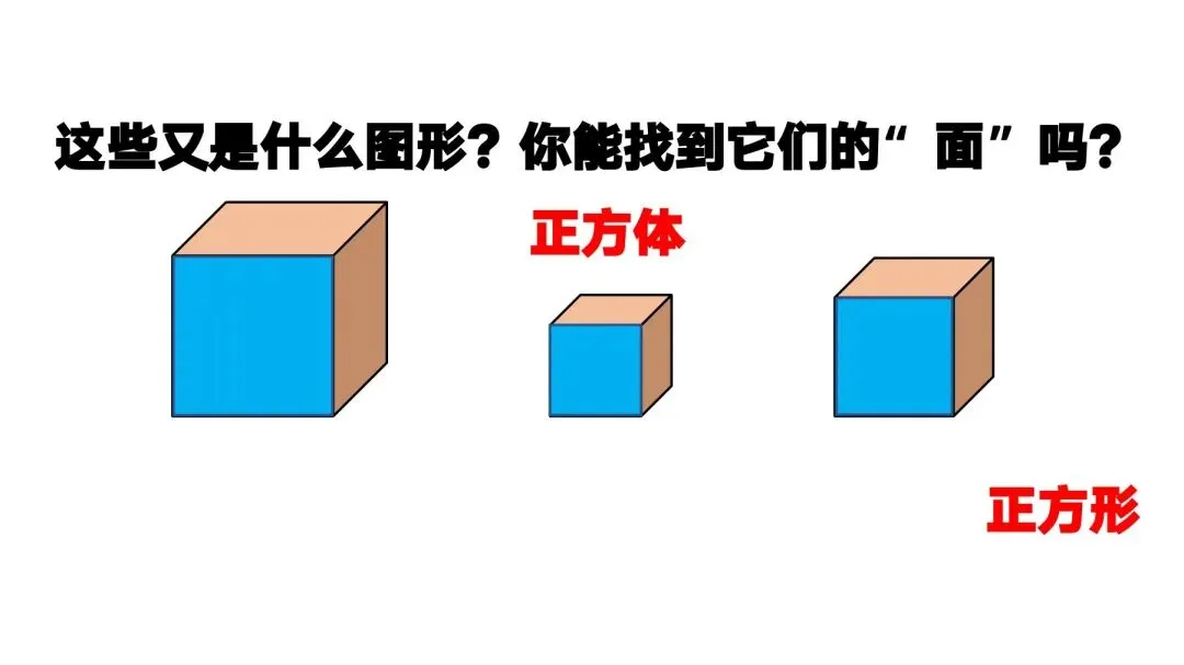 (1)课件呈现正方形,你是从哪一种形状的物体得到这种图形的?它有什么特点?