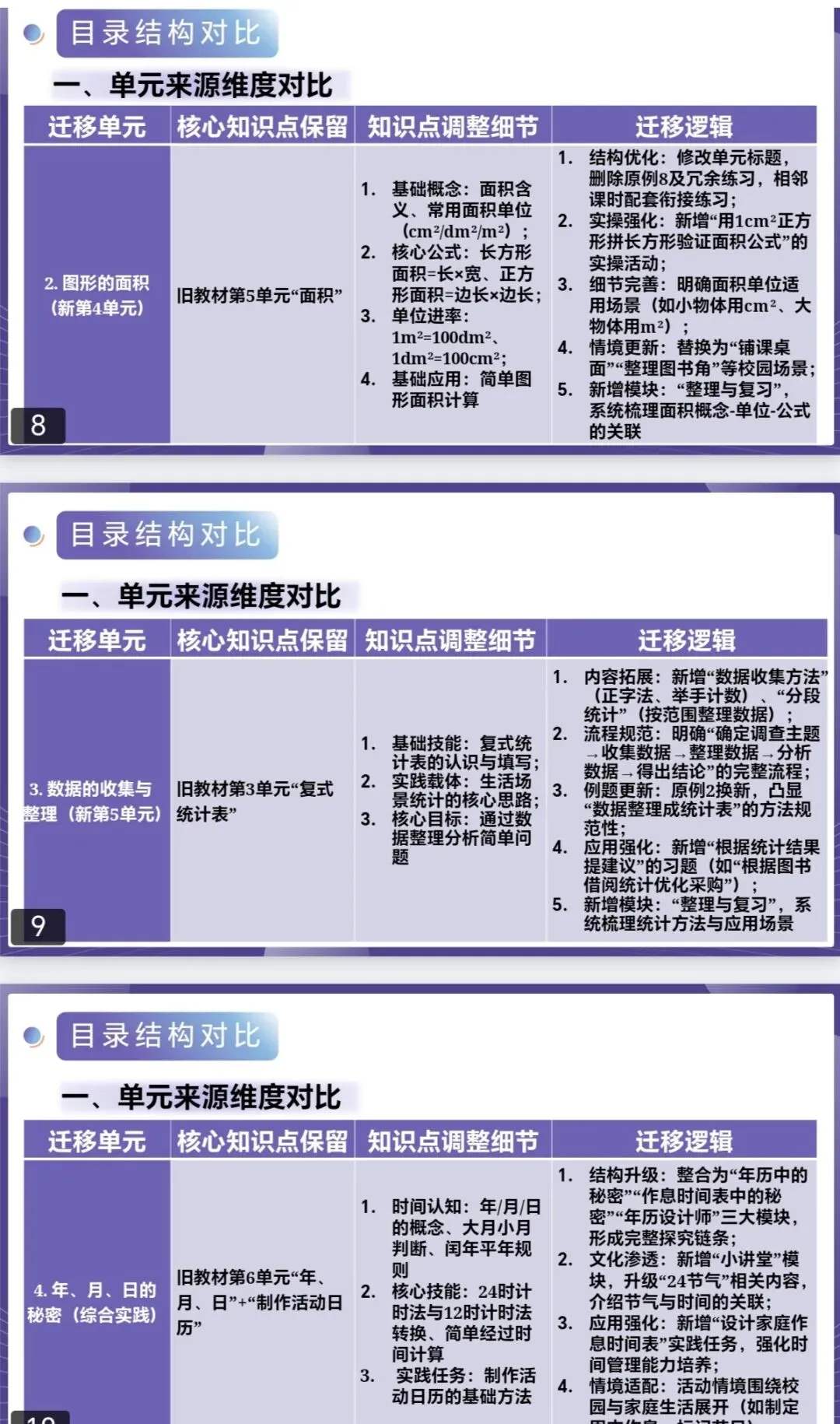 三年级下册数学变化很大,核心是删旧单元、增新内容、强化逻辑与应用。