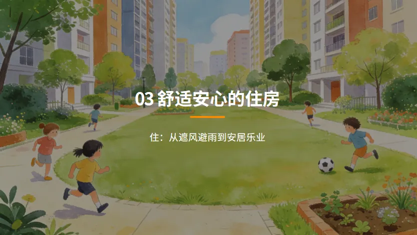 1.掌握服装从“保暖” 到 “时尚”、食物从 “吃饱” 到 “吃好”、住房从 “拥挤” 到 “舒适”、交通从 “缓慢” 到 “快捷”、文化生活从 “匮乏” 到 “丰富” 的具体变化,能结合课件案例和生活实际,用简洁的语言描述不同领域的幸福表现。