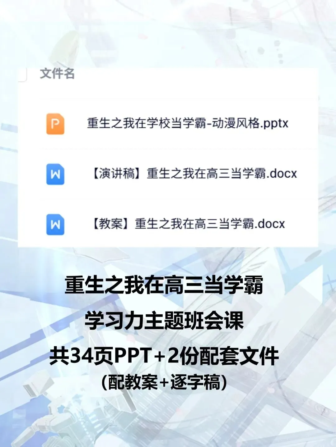编号【219-0】重生之我在高三当学霸(含教案+逐字稿)