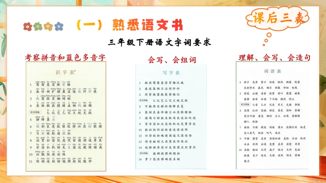 26春三年级下册语文寒假预习全册必背重点知识汇总