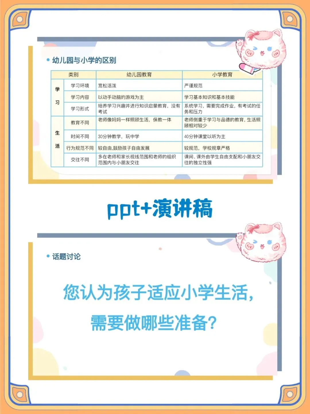 >幼儿园优质课件|幼儿园大班|幼小衔接家长会|配套PPT课件+发言稿