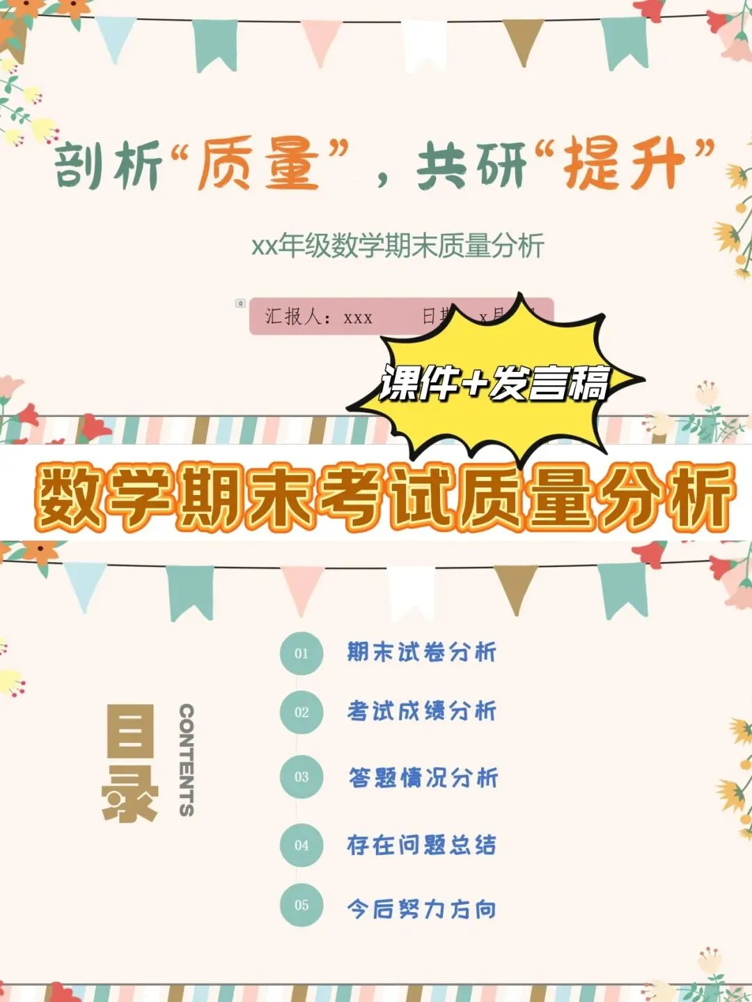 数学期末质量分析课件和发言稿,PPT天花板(30页课件+发言稿)