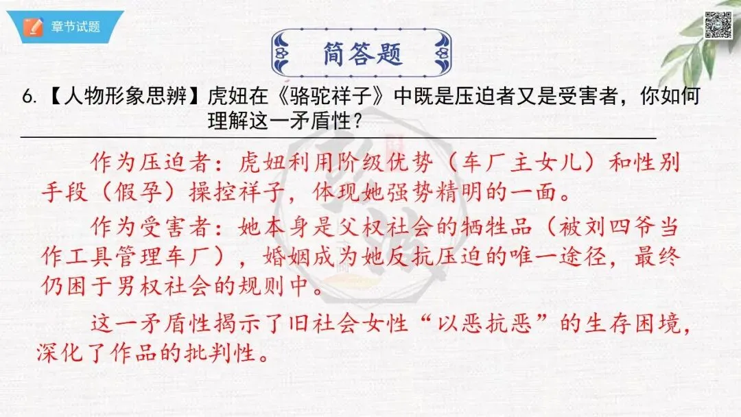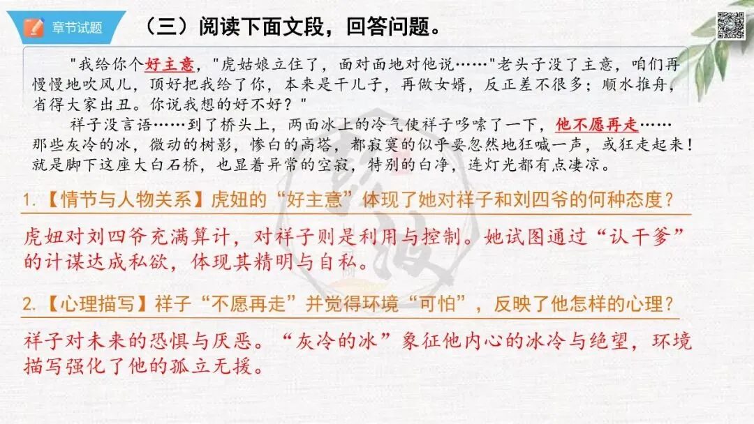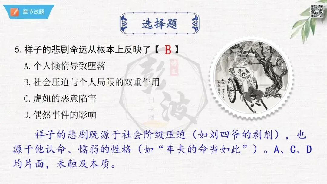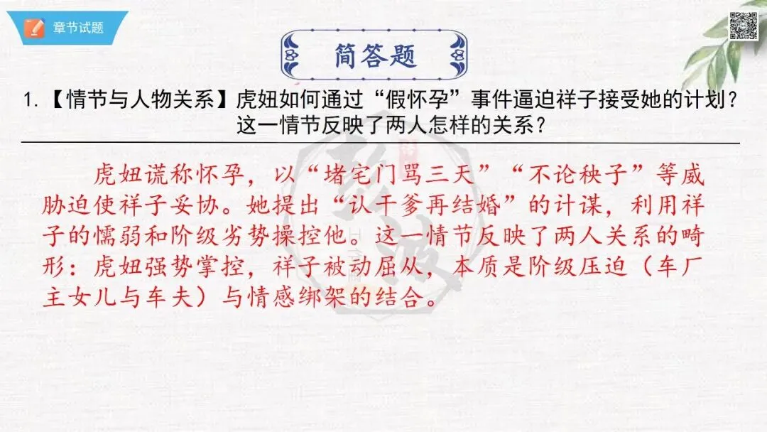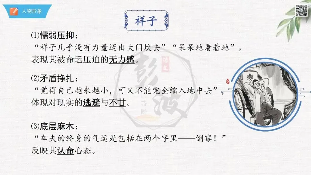 ◆02《骆驼祥子》章节课件24章-情节梳理+人物形象+语句赏析+章节试题(PPT)(65元)