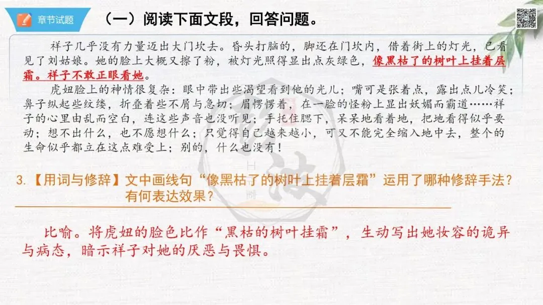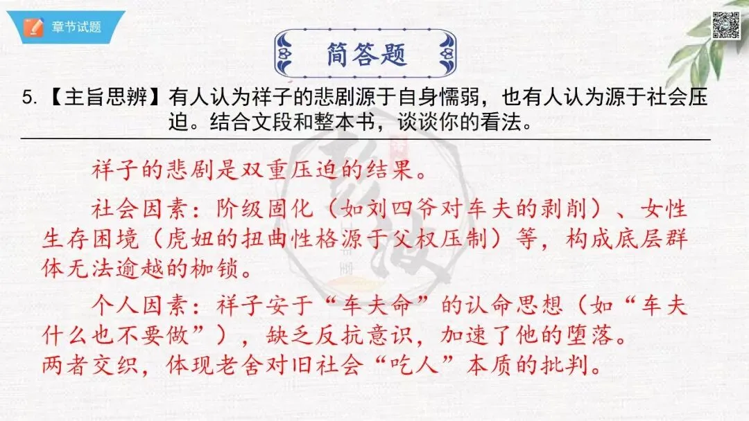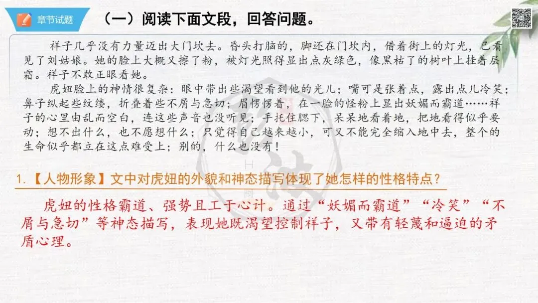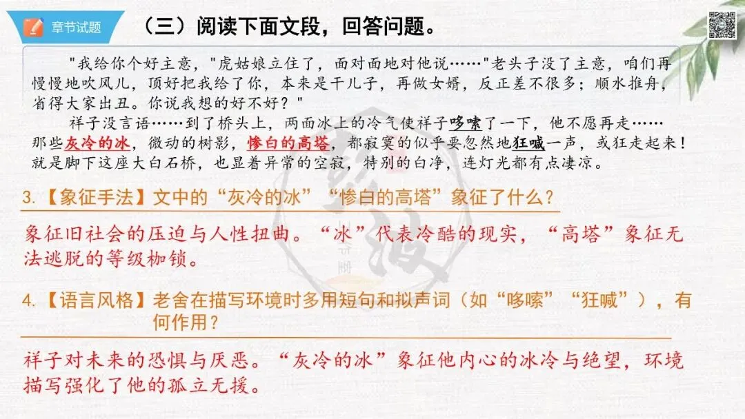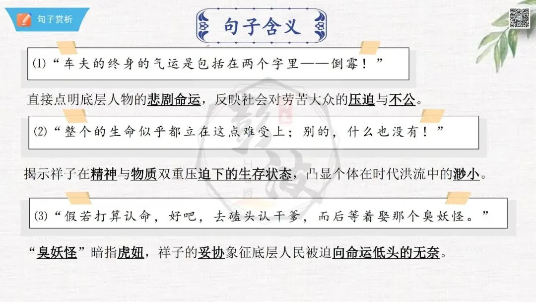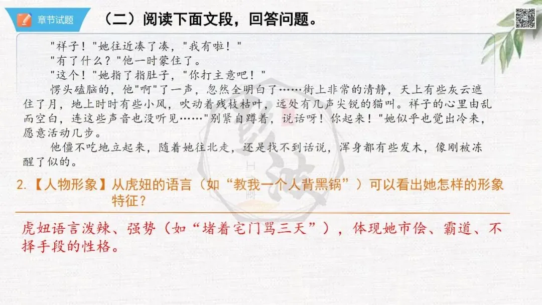 ◆02《骆驼祥子》章节课件24章-情节梳理+人物形象+语句赏析+章节试题(PPT)(65元)