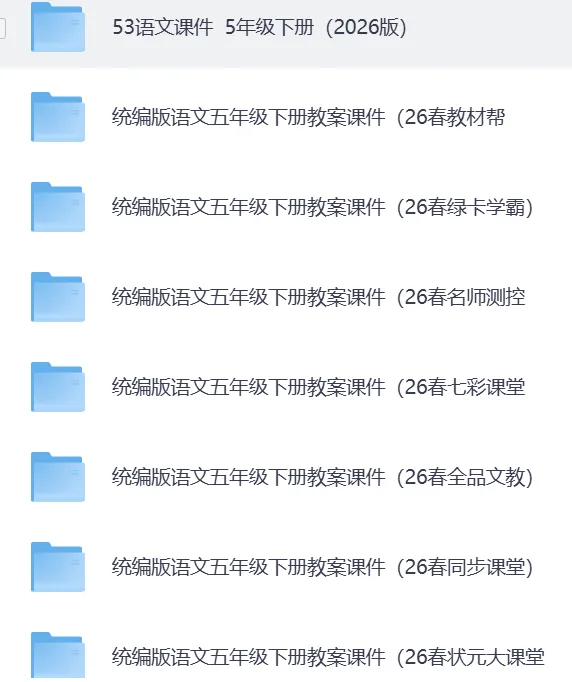 2026春新人教部编版语文五年级下册教案课件教学资源包(持续更新)·可免费下载。内含优质教案、精美 PPT、同步练习等全套教学资料,紧扣教材、实用省心。老师备课、家长辅导都能用,轻松搞定新学期教学与预习!