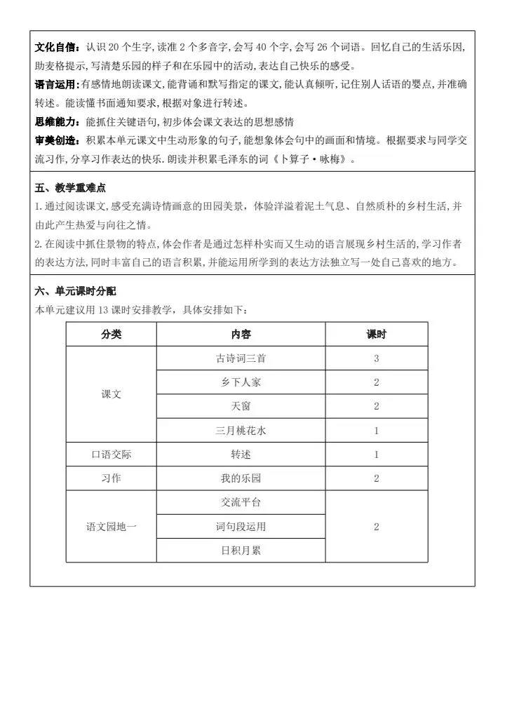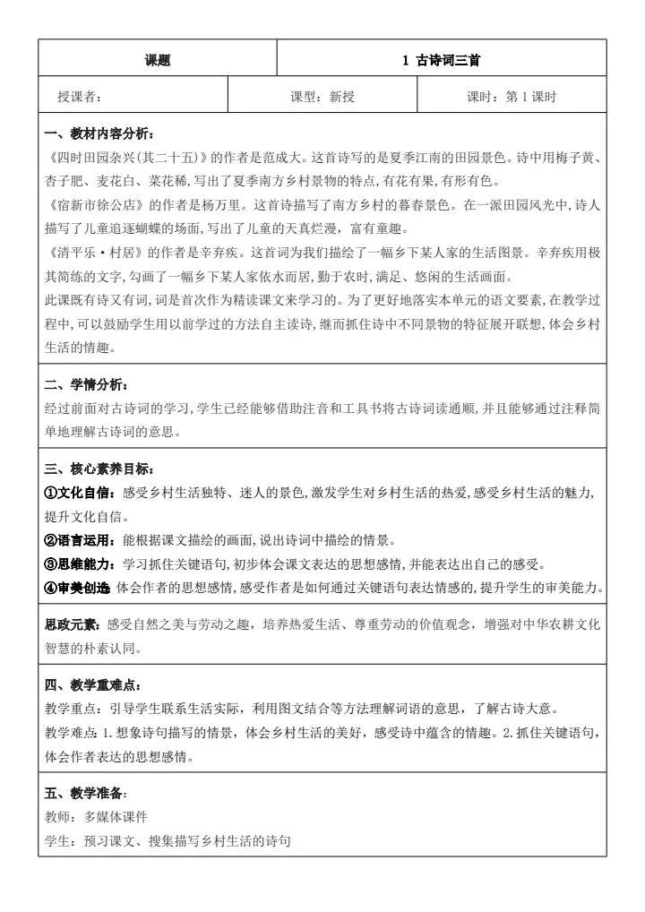 四年级下册语文《全册核心素养教案(含教学反思、二次备课栏、思政元素)》word版可编辑,高清电子版可打印