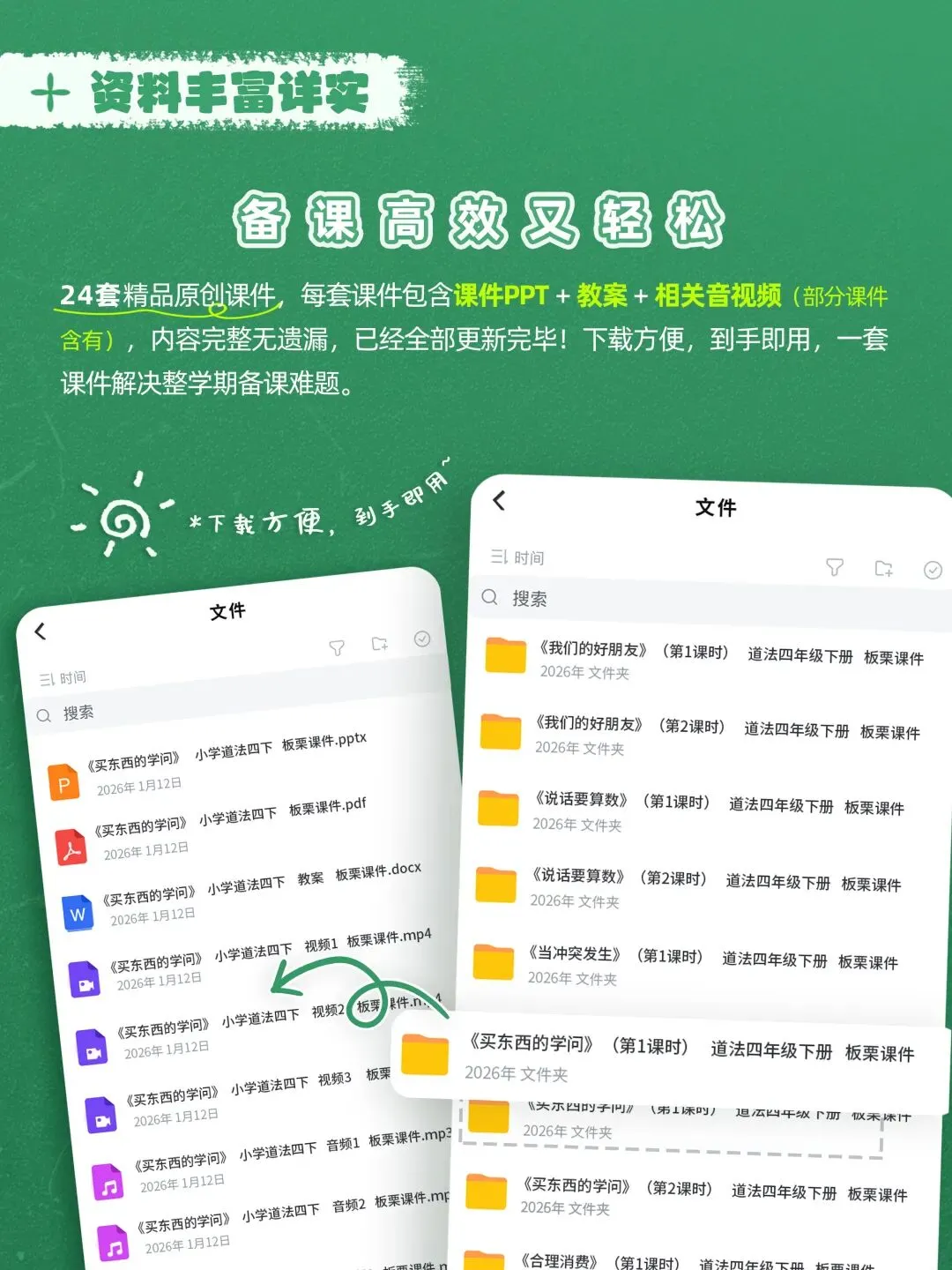 ·全套覆盖四年级下册道法教学,配套课件、教案等完整资源,备课高效省心。
