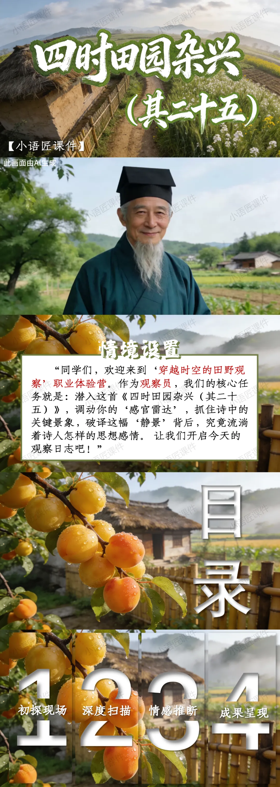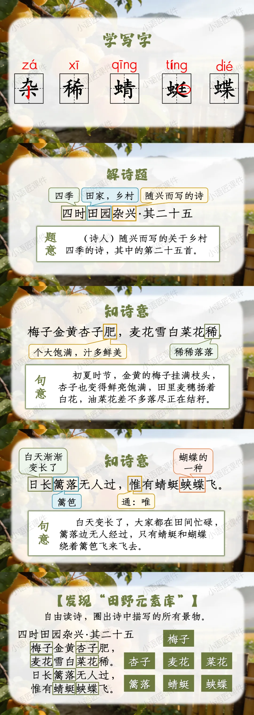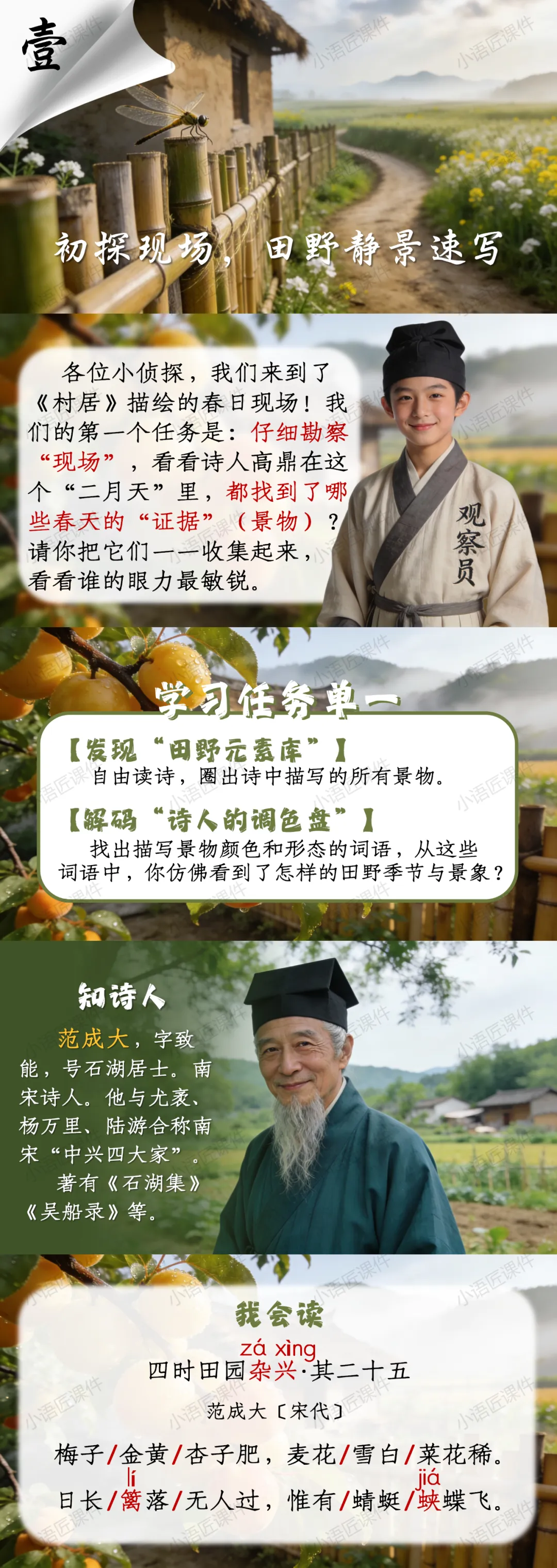 大家好,我是小语匠课件!今天给大家分享部编人教版四年级下册古诗三首《四时田园杂兴(其二十五)》的独家课件。(课件获取方式见文末)