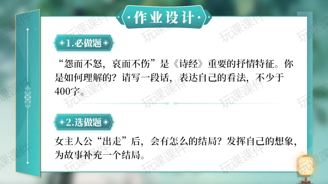 当前位置:首页>课件>颜值与实用双在线!选必下《氓》(课件+教案+学习任务单),助力教师呈现高质量公开课课堂 | 玩课