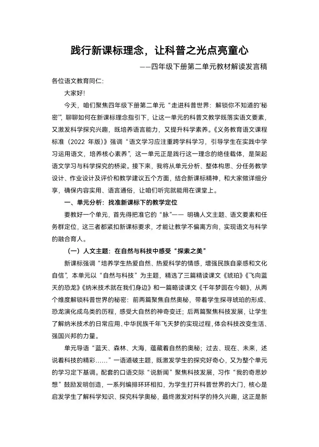 >2026新四年级下册第二单元大单元解读课件+发言稿+大单元教学设计