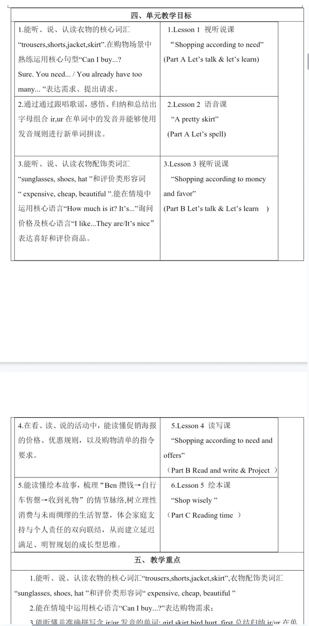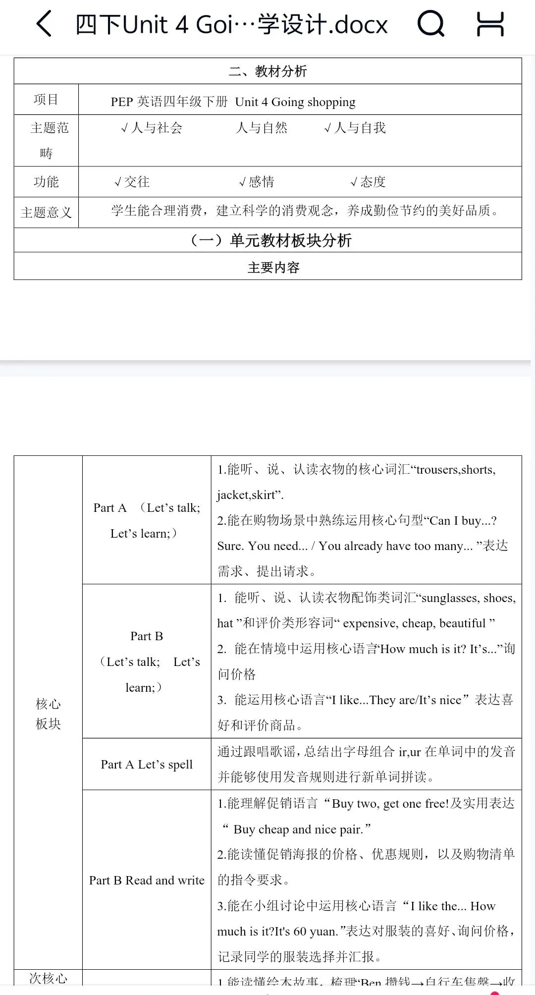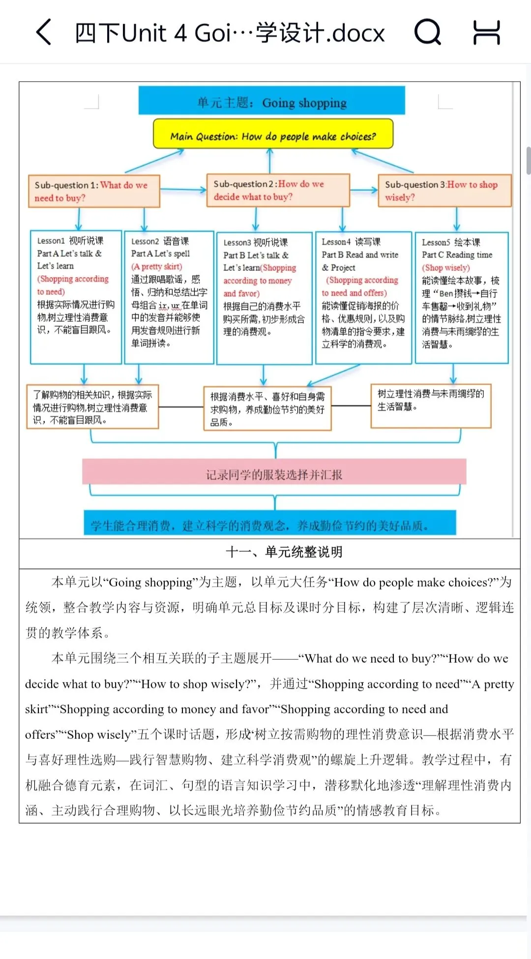 Unit 4 Going shopping大单元整体教学设计+分课时教案(包含分层作业设计、教学反思)
